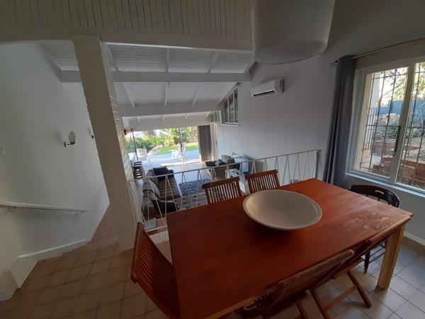 The open plan lounge and dinning area provides a seamless flow, perfect for entertaining or enjoying family time. Large windows frame the picture of sea views, bringing a sense of serenity indoors. The kitchen is a chefs dream, complete with high end appliances, plenty of storage and a breakfast nook that overlooks the lush gardens. This property boasts four generously sized bedrooms, each designed with ample natural light and built in cupboards. The main bedroom includes ac en suite bathroom and access to stunning sea views. Two beautifully designed bathrooms offers sleek finishes, with main en suite featuring a shower, bathtub and modern fittings.