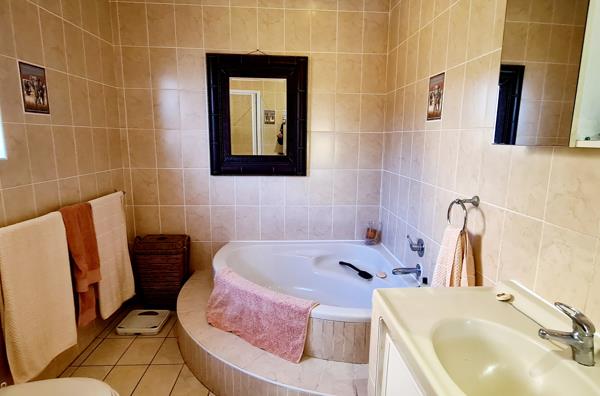It offers three spacious bedrooms and two bathrooms. The light and airy open plan lounge and dining area is very spacious. There is a wonderful kitchen with granite tops and an informal dining or breakfast area in the kitchen or alternatively add more cupboards to make a huge kitchen. The garden is very neat and there is a sparkling pool and a very nice braai area. There is an en suite one-bedroom flatletoffice laundry outside