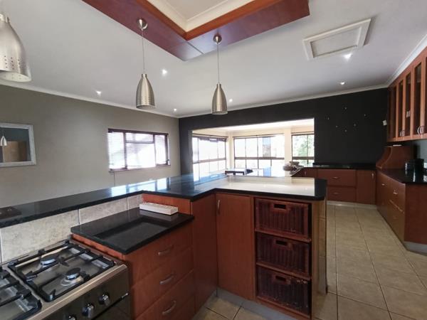 Welcome to this stunning home, where comfort meets functionality. As you step inside, you are greeted by a beautiful, spacious kitchen, thoughtfully designed with built-in cupboards and plenty of counter space, perfect for preparing meals or enjoying a relaxed breakfast. This welcoming area flows effortlessly into a bright and airy lounge, ideal for unwinding or entertaining guests. Adjacent to this is a generously sized dining area, providing the perfect setting for family meals or gatherings with friends.