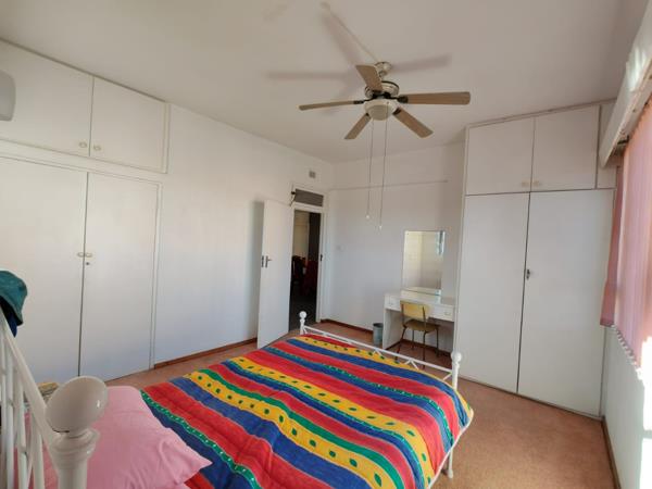 Discover coastal living in this secure 2-bedroom, 2-bathroom apartment located in Scottburgh Central. The residence features a spacious open-plan living and dining area, benefiting from ample natural light and equipped with ceiling fans for comfort. While the aesthetic presents an opportunity for modern updates, the functional layout provides a welcoming atmosphere. The compact kitchen offers wooden cabinetry and tiled surfaces, complete with a pre-paid electricity meter for convenience. Both bedrooms are well-lit, featuring natural light and ceiling fans, with one offering extensive built-in wardrobes and overhead storage. The bathrooms are functional, each including a full bathtub and tiled finishes. The property provides a single garage and an additional parking space, ensuring practical accommodation for residents.