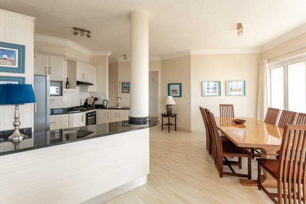 This apartment on the ground floor has spectacular sea views. The stack-away doors from the living area open out onto the balcony offering spectacular sea views. A modern open plan kitchen with fitted cupboards and granite tops. Adjacent to it is a scullery where your machines can be installed.