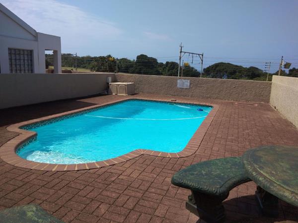 Great sea facing unit across from the golf course . Beautiful 3 bedroom, 2 bathroom unit in a well maintained complex with open plan kitchen, lounge / dining area and 2 garages. Lounge and main bedroom open out onto an enclosed patio. Unit is ground floor and sea facing. Complex has electric fencing and communal pool. Perfect for holidays or holiday letting. Small indoor pets allowed.