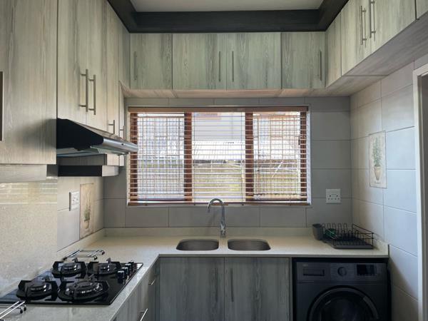 The lounge and dining room are open plan to the lovely kitchen and there is a large verandah area outside and a neat garden. The fabulous kitchen is very modern and brand new with lots of cupboard space This unit is on the end and offers lots of privacy.