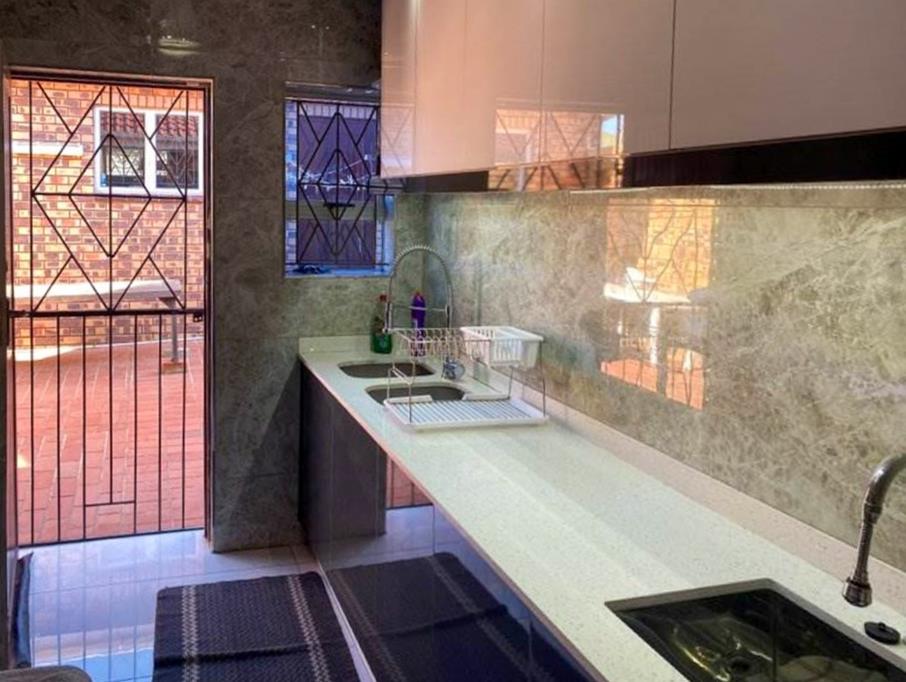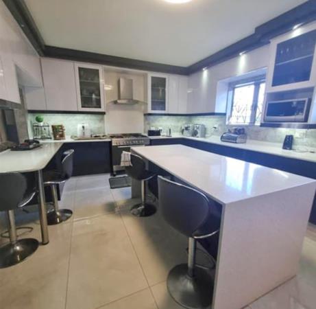 Inside, the home features three well-appointed bedrooms, each with its own luxurious full en-suite bathroom, plus a guest toilet for added convenience. The layout includes two spacious living areas for both lounge and dining, a private study, and a fully renovated kitchen with scullery, designed to impress anyone who loves to cook and entertain.