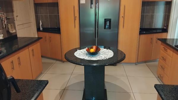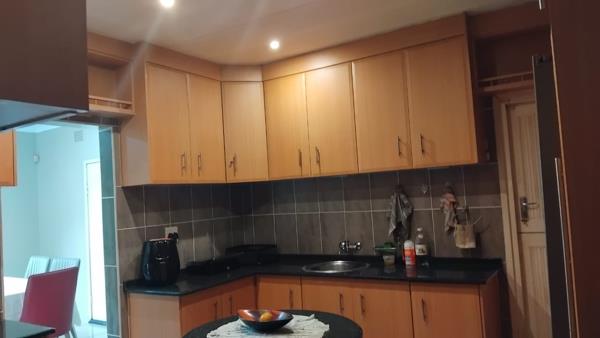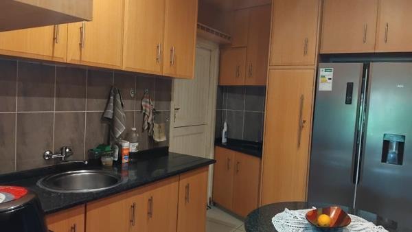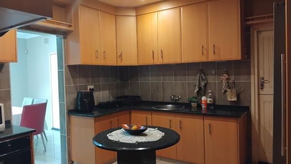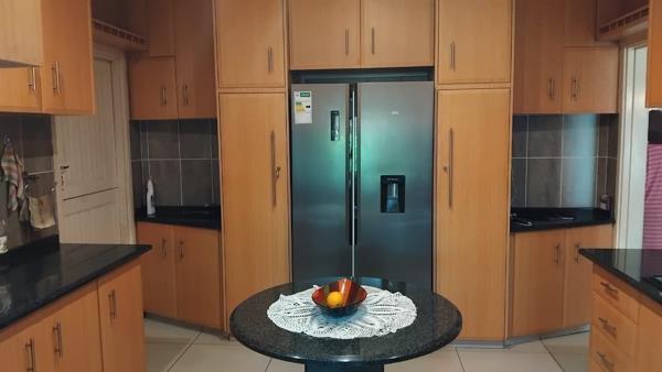 This home, situated in Umzinto, offers a modern and large living space. It features three bedrooms with two en-suite bathrooms. The house is tiled throughout and includes extensive cupboard space.