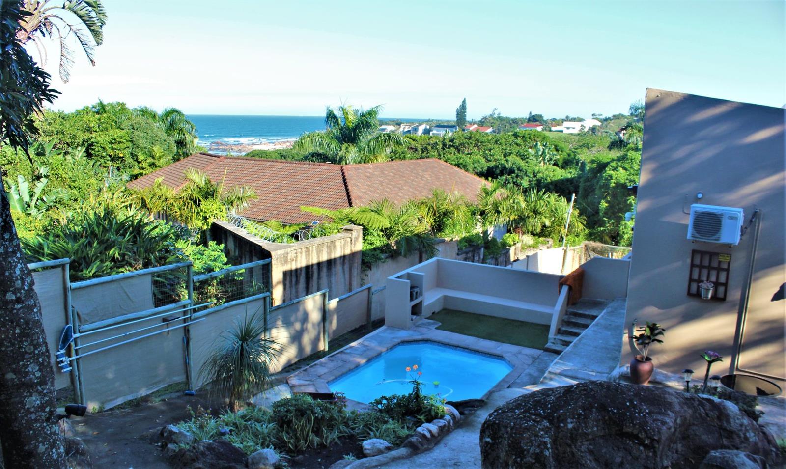 Situated on a cul-de-sac in the coastal seaside village of Munster this property is a great opportunity to relocate to or purchase your very own holiday home at the coast. Lovely ocean and lagoon views can be appreciated from the main house which incorporates spacious open-plan living with double-volume ceilings and a lovely enclosed patio that overlooks the sparkling swimming pool below. A newly renovated modern and well-fitted kitchen complete with granite countertops, a glass top hob and an eye-level oven has a separate scullery. A short passage leads to three spacious bedrooms, two of which share a full bathroom and the main enjoys a full en suite bathroom. A door can be accessed from the passage and leads to the self-contained flat below.
