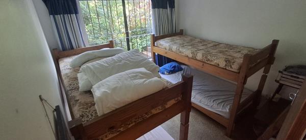 Outside you will find a lovely garden filled with indigenous trees, giving the home a peaceful and private atmosphere. There is a double garage and extra parking, as well as a staff room with a toilet at the kitchen side. A water tank provides backup supply, and the home is fitted with indoor and outdoor beams and an alarm system linked to armed response for extra peace of mind. The house is also sold fully furnished, making it ideal for holiday living or a comfortable permanent home.