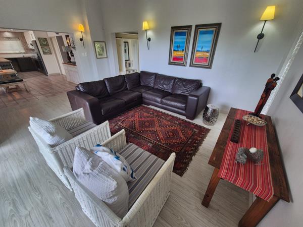 Enter via a welcoming hall with a handy mud room. The home opens up into a generous lounge and a spacious open-plan kitchen and dining area. The modern kitchen features granite countertops, a gas hob, and sleek cabinetry. Both the lounge and dining room flow seamlessly onto separate patiosperfect for enjoying the views and coastal breeze.