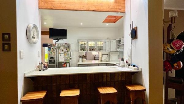 It is double storey with three of the four bedrooms upstairs, the main bedroom has an en-suite bathroom with its own balcony, giving lovely sea-views and views of the farm and stables. The home totals an area of approximately 500m2.