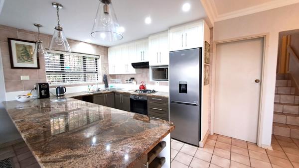 The well maintained, pristine garden is fully fenced with remote access and the home is protected with security gates, burglar bars, an alarm and outdoor beams connected to 24-hour armed response.