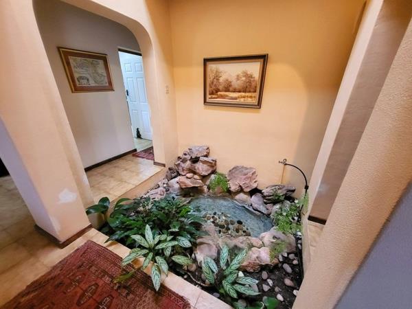 Under the home are 2 automated garages plus a storeroom with secure steel door, perfect for power tools etc. The garden is filled with cycads, succulents and aloes and the front and back has been left unfenced so that wildlife can roam freely around the house.