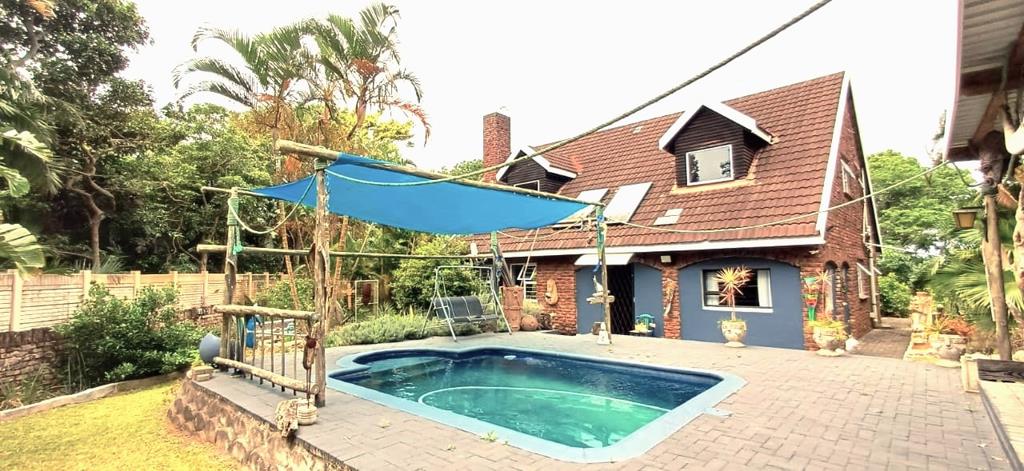 Nestled in the heart of Marina Beach, this spacious double storey face brick home offers the perfect blend of comfort, functionality, and seaside charm, just 700 metres from the main blue flag beach. Ideal for families or those looking for a peaceful coastal lifestyle. When you enter the house you are greeted with an entrance hall leading into the two spacious lounges. One lounge offering a fireplace that adds warmth and character, perfect for cosy winter evenings or entertaining all year round. From the second lounge you steps out onto the outside entertainment areas consisting of a sparkling swimming pool and laapa making it an ideal setting for relaxed afternoons and family gatherings. The cottage-style kitchen is a cooks delight, with ample solid wooden built-in cupboards, granite tops, eye level oven, gas stove, extractor fan and a large pantry The dining room is open plan next to the kitchen. Also, downstairs are two generously sized bedrooms with built in cupboards a full bathroom as well as a guest toilet. Going up a delightful spiral staircase, you enter a cosy lounge opening onto a balcony overlooking the garden. Ideal for morning coffee or quiet reading. This area is currently used as an art studio. On the same level you find the expansive main bedroom with its own walk-in wardrobe, another spacious bedroom with built in cupboards, a shared bathroom with shower, basin, and toilet and a convenient linen cupboard just outside the bathroom. The Second bedroom is also very spacious with built-in cupboards.