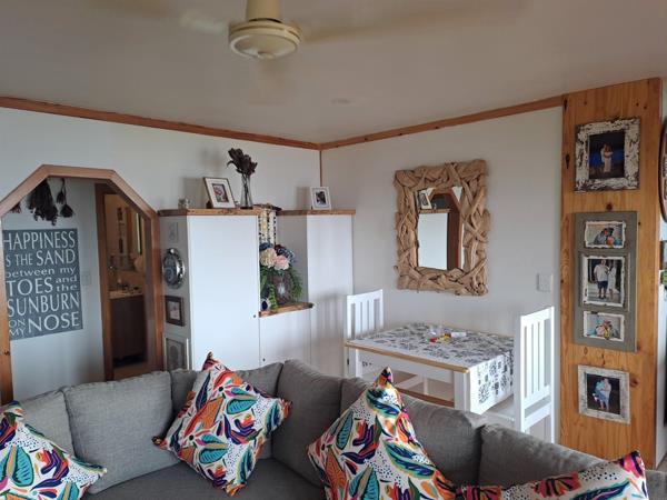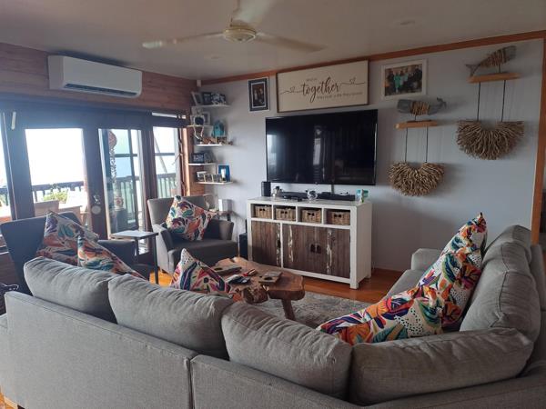 .You are going to be enchanted by the ultra private main house with its expansive wooden deck. The ocean vistas are simply incredible. This is probably where you are going to want to spend most of your time!. There is a seamless inside/outside flow from large open plan living areas. The finishes throughout this home are beautiful and up to date. The bathrooms are modern, the bedrooms spacious and the tastefully renovated eat- in kitchen has plenty of cupboards, beautiful granite tops and space for all your appliances! Stacking windows open to the built in braai area in a corner of the deck. A delightful feauture is the enclosed pajama lounge linked to the master bedroom. It forms part of the deck. There is a tandem double garage with a seperate storage area for all your toys, as well as APPROVED plans for a carport. An INVERTER with 3 batteries and two 5000 l water tanks ensure electricity and water at all times. Provision has also been made for rainwater harvesting. Many extras include 5 airconditioners- 3 upstairs and 2 downstairs.