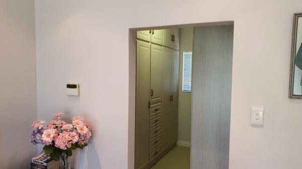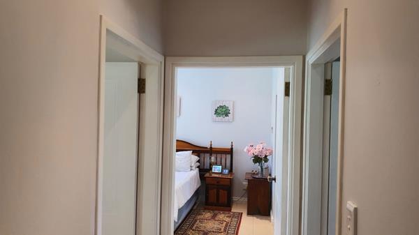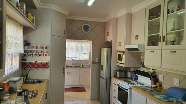 The gourmet kitchen, boasting modern appliances, ample cupboards space and sleek countertops. The bedrooms are spacious and well-appointed, offering restful retreats with built-in cupboards and lovely garden views. The master suite is a standout, complete with a luxurious en-suite bathroom.
