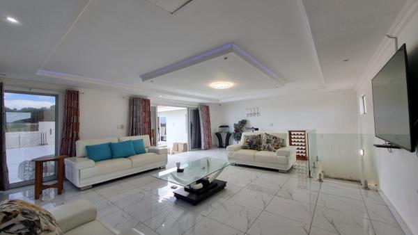 Designed for relaxation and entertainment, the outdoor spaces include a sparkling swimming pool, tranquil fish ponds, attractive water features, and a spacious patio perfectly positioned to capture breathtaking sea viewsideal for enjoying morning coffee or evening sundowners. A double garage and generous off-street parking add convenience for residents and visitors.
