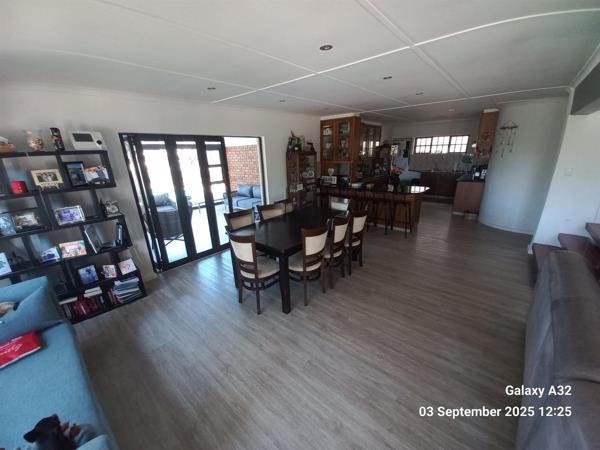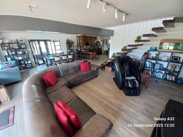 The main house features 4 well-sized tiled bedrooms with built in wardrobes and 3 bathrooms of which 2 is on-suite. The main suite, tucked away at the end of the passage, offers a private retreat with a stylish on-suite bathroom and sliding doors that open to a patio perfect for outdoor entertaining. Two additional bedrooms share a bathroom, while the 4th bedroom has its own on-suite and leads out to an open patio area above the double garages.