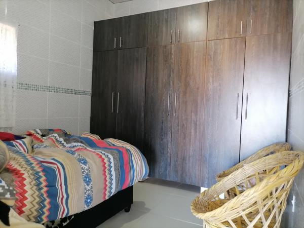 This spacious double-storey family home offers versatile living with two bedrooms, two full bathroom, and a modern open-plan lounge, dining area, and a fully fitted kitchen downstairs, while the upstairs level boasts four bedrooms and two-family bathrooms, all fully tiled for easy maintenance. Outside, a large garden with ample potential complements secure parking for up to eight vehicles, while added peace of mind comes with an alarm system and panic button. The property is sold furnished, vacant on transfer, and presents an excellent rental income opportunity of up to R15 000 per month, with plans provided for completion and compliance.