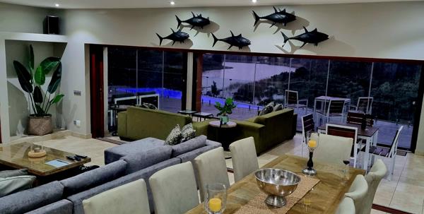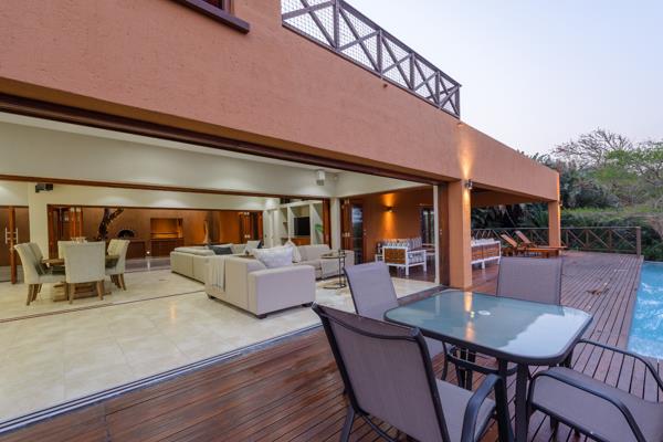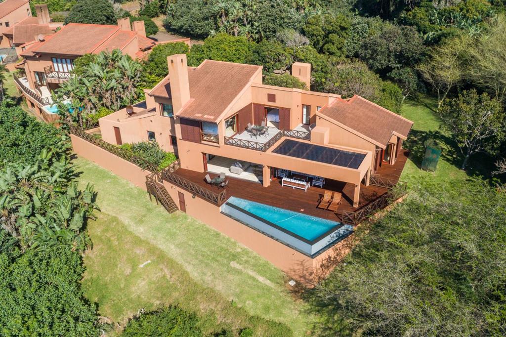 Nestled in a premier location in exclusive San Lameer golf estate this sensational villa enjoys uninterrupted and panoramic views from almost every room. This spectacular home simply offers the best of the best for a secluded and privileged lifestyle. Entrance opens into a generous, enclosed courtyard with pizza oven. Stack doors open into an enormous reception room, comprising living and dining room with gas braai. This room has a further set of glass doors opening onto a covered patio, deck and rim flo pool with child safe glass balustrade. Naturally the views from all of these rooms are absolutely spectacular! The adjacent, modern fitted kitchen with sea view has a serving hatch into the adjacent reception rooms and offers a gas stove, prep sink, butchers block, coffee station, ample black granite working surfaces and a huge walk-in cold room. There is a separate scullery / laundry leading into an enclosed drying and storage yard.
