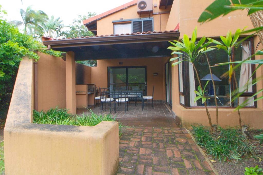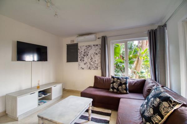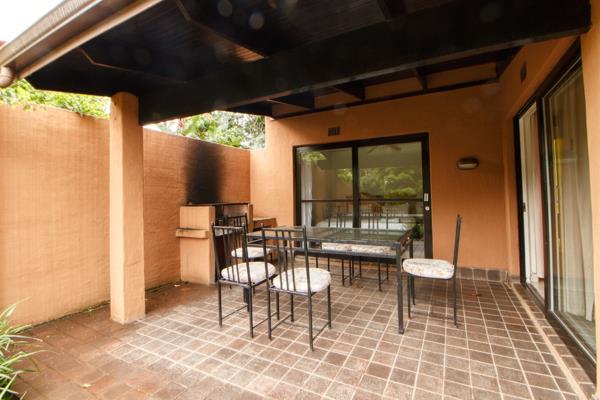 A bathroom with a bath / shower combo serves both bedrooms, while a covered patio includes a built-in braai and opens directly onto the surrounding gardens, making it ideal for outdoor enjoyment.