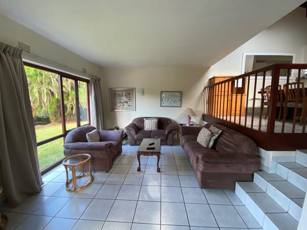 Upstairs has been devoted to the master bedroom with en- suite bathroom and views of the garden and dam. The second bedroom is on the ground level and has a conveniently situated bath and basin. The guest toilet is separate. This bedroom also enjoys the same scenic views. This villa is well located and close to the beach as well as the estate amenities. The furniture and household contents are included in the price. . Golf membership is included in the purchase price of the villa and allows one nominee to play at the members rates per annum. Levies include upkeep of common ground, security, lifeguards, sporting facilities and maintenance of roads.