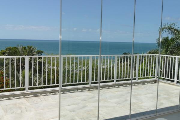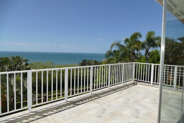 Sleeping accommodation downstairs consists of three bedrooms and a smaller utility room or fourth bedroom with a conveniently situated bathroom. Two generous proportioned bedrooms have en-suite bathrooms. One bedroom leads onto the pool area and the other onto a small covered private patio. Upstairs has been devoted to a spacious master with ample cupboards bedroom and full en-suite bathroom. An enormous office is adjacent to the bedroom and both rooms open onto an glass enclosed covered patio through sliding doors. Stack doors open from patio onto an open balcony. The sea views from upstairs are simply breathtaking!