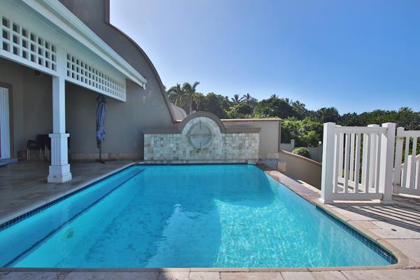 This elegant is located in a small, elite complex. The unit is exceptionally spacious with superior finishes throughout. The garden gate permits easy access for a barefoot stroll onto the beach Automated access gates lead to the secure, spacious basement garage with direct accessed into the unit. The Front entrance door opens into a spacious, open plan reception room comprising lounge, dining room and modern fitted kitchen with breakfast bar, granite surfaces and scullery which opens into enclosed drying yard. The living rooms have glass stack doors opening onto a generous, deep covered, all weather patio. This patio offers a built-in braai, rim flo pool and a stairway leading to the well-maintained garden with pedestrian gate leading to the beach.