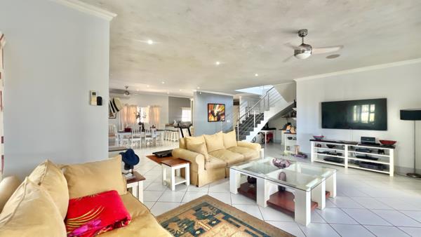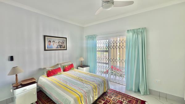 Head upstairs via the elegant staircase and find yourself in a lovely lounge area that opens to a balcony with stunning sea views. Theres even a teen lounge with its own kitchenette, perfect for gatherings or some quiet time. The upstairs bedroom is a cozy retreat with a ceiling fan and built-in cupboards, plus an en-suite bathroom featuring a bath, walk-in shower and a private balcony overlooking the pool, garden and those breathtaking sea views.