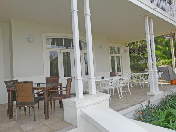 This well-located home is currently operating as a four-star guest house. Comprising six neat and well equipped en-suite rooms, leading onto private covered patios or balconies with spectacular views of the pool, golf course and sea. The usage is boardinglodging and zoning is Business commercial. The common areas consist of a generous covered patio overlooking the pool, golf course and ocean, reception area, open plan lounge, dining room, well designed kitchen with scullery and spacious storage room. There is a conveniently situated, fully equipped breakfast area and ample comfortable seating.