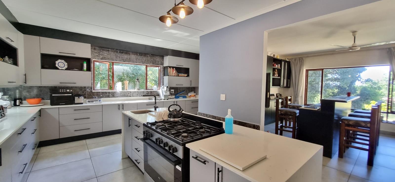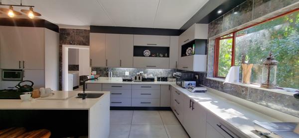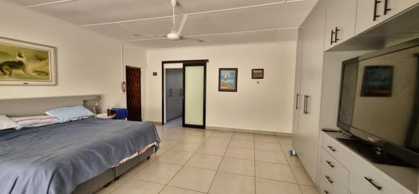 Easy and secure access with an automated gate, double garage with direct access into the house, working intercom and spacious driveway with more parking options. The entrance invites you into a spacious foyer and this flows into a super-spacious open-plan living space which includes a lounge, dining room, bar area, office space and an ultra-modern kitchen. A large entertainment patio area is set next to the living space where sea-views can be seen. The modernised kitchen has ample cabinetry, Caesar-stone counter-tops, gas hob-oven, a walk-in pantry and a huge laundry/scullery that leads to an outside courtyard. Down a wide hallway are four beautiful color-coded designed bedrooms that boast modern built-in cupboards, two bathrooms, guest toilet, with main being en-suite and main with a walk-in dressing room. Other features include aircons, ceiling fans, domestic / storage rooms, Inverter with 2 back-up batteries, new smart meter installed to avoid load-shedding up to stage four. The property is well maintained and provides unique entertainment spaces with swimming pool and lush gardens. There is ample backup water storage with 2x 5000litre tanks connect with pump to municipal water. Southbroom village offers beautiful swimming beaches, tennis, paddle, bowls and golf clubs, fine restaurants and various other amenities for everyday living.