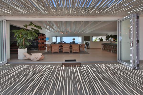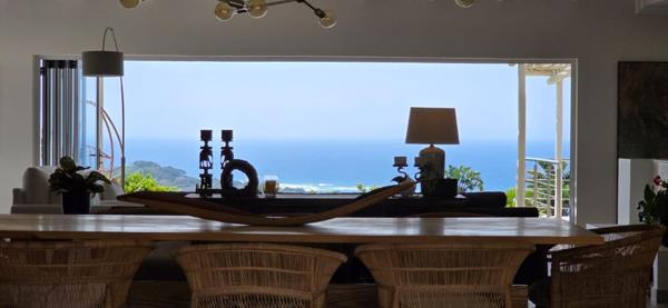 Uninterrupted and absolutely breathtaking views of the ocean greet you as you enter this unique home through wall-to-wall glass stacking doors. Youre immediately drawn to walk through this magnificent home on to the front veranda. You will be totally mesmerised by the 180-degree view of the sparkling ocean and Southbroom s scenic fairways. This propertys tranquil location and elevated position provides maximum privacy and unequalled vistas of the ocean, fairways, clubhouse and lush subtropical vegetation. The clean, contemporary design blended with warm Mediterranean influences create easy, light and open living. The extended, flowing layout can accommodate a large family or group of friends with privacy and comfort, while carefully curated living areas invite people to come together to dine or relax, inside and out.