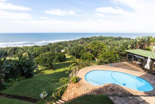 Exclusive home nestled in a large manicured and meticulously maintained garden with direct access onto Southbrooms scenic beaches and coves. This property offers several generously proportioned reception rooms all with breathtaking ocean views, ample spacious bedrooms with bathrooms, library, office and an entertainment area with pool and pool house. The exterior doors all have electronic, aluminium roller shutters. There is a borehole and a backup water storage tank as well as an inverter with solar panels in the event of a power outage.