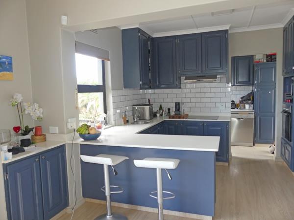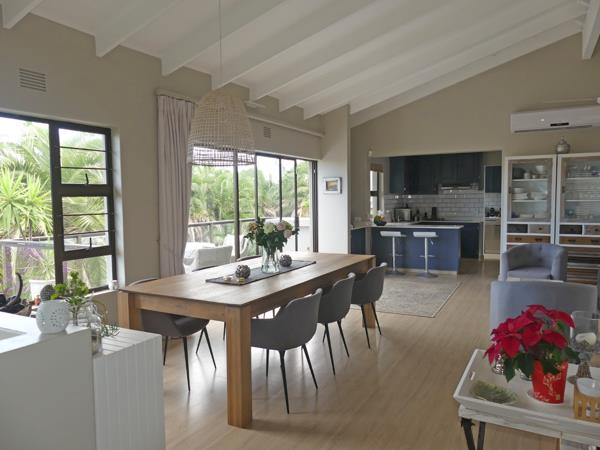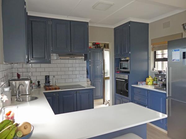 Entrance opens into open plan reception rooms comprising lounge / dining room opening onto a patio with views of the ocean and garden, fitted kitchen with breakfast bar and separate scullery / laundry opening into the garden. The spacious, covered entertainment area with braai is off the reception room and leads to the newly renovated pool area. An informal lounge with bathroom is also situated on this level. This room could be used as a fifth bedroom. A spacious double garage on this level, provides direct access into the home.