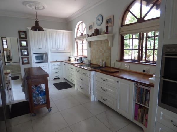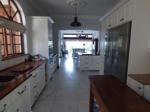 Walk into the spacious entrance hall and stop to get your breath! The open plan gourmet kitchen, with a separate scullery plus a separate laundry room is every person''s dream who loves to cook and entertain. There is also a delightful breakfast area that leads to the sitting room adjacent to the kitchen. The formal lounge is dazzling as is the formal dining room with the solid wood fitted cabinets and small courtyard at the side.