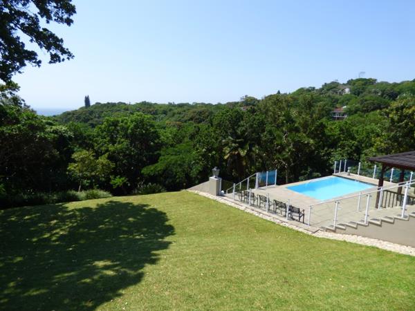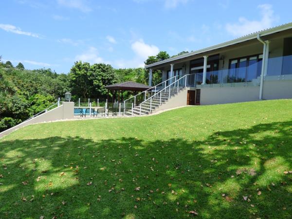 The undercover veranda stretches the full length of the house from the main bedroom to the formal lounge, with each room having stackable doors to the outside area. The covered Lapa is on the same level of the rim-flow swimming pool with steps leading to the landscaped garden which offers astonishing scenery of the untouched vegetation tree tops as well as the Indian Ocean, which gives you the best of both worlds, birdlife and a chance to watch the whales and dolphins!!