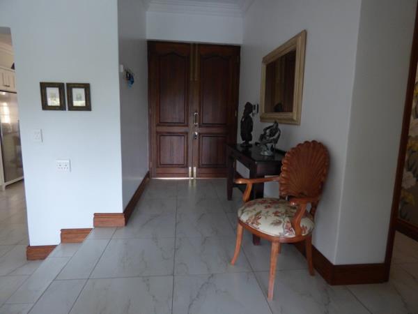 There are loads more to this stunning home such as the double garages, with loads of visitors parking space, large storeroom, staff toilet and shower, back up water supply and generator. The property is walled on three sides and the rear is protected by the natural bush that is also part of what makes up the 5,165m2 of the beautiful property. There is a full alarm system, CCTV at the main door, automated gate and intercom. A truly exquisite property that needs no work done on it all. Believe me, you will not be disappointed!!