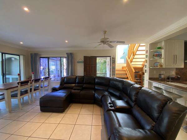 The entrance can be found on the second level next to the house. The second level includes the kitchen, dining, and lounge area that is all open plan. The patio is accessible through sliding doors leading from the dining area. There is a fully equipped master en-suite bedroom downstairs that also opens up to the patio. The glass roofed staircase leads you upstairs to the third level, you will find two bedrooms and one bathrooms. Both the bedrooms open onto a balcony with a slight seaview. From a security point of view the complex is fully fenced with electric fencing as well. So, if you seeking safety, space, and serenity amongst nature, Louries View is it.