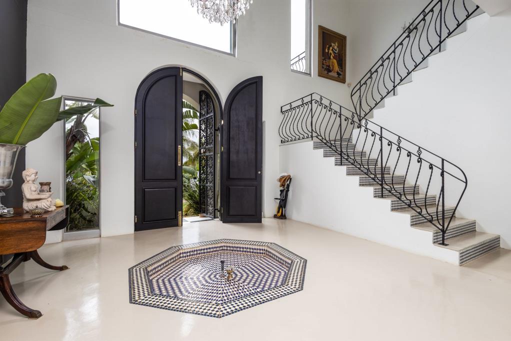From the moment you enter through the large front door into the spacious entrance hall one gets a sense of serene grandeur. The double volume ceilings, sweeping staircase, dramatic use of arches, the bespoke mosaics commissioned from two local artists lend the house stature and grace.