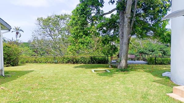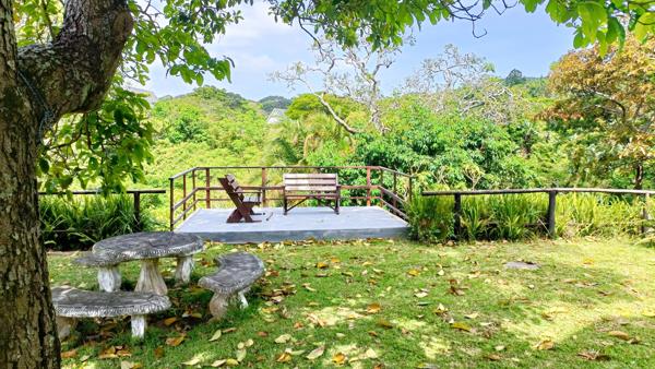 The property is large with most of it in natural bush and it is where the Bushbuck trail runs through. There is a deck that has a wonderful view overlooking the lush bush and trees with the distant ocean in view.