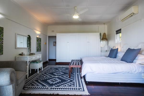 A separate exterior staircase leads down to the lower level, where two generously sized suites each with a kitchenette and en-suite bathroom are ideal for short or long-term letting. The larger of these includes a comfortable lounge area. This level also houses a well-equipped laundry with separate ablution facilities and a drying yard.