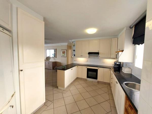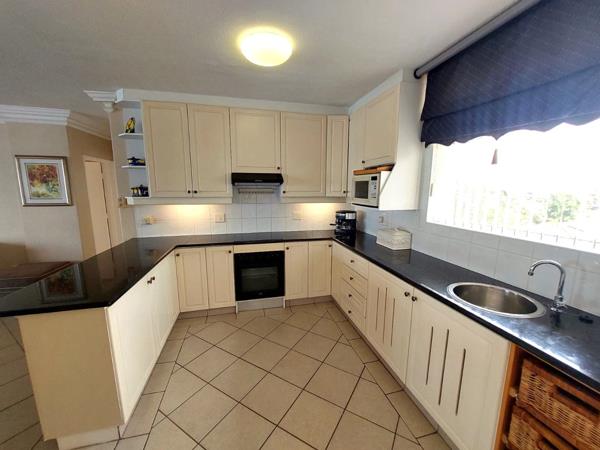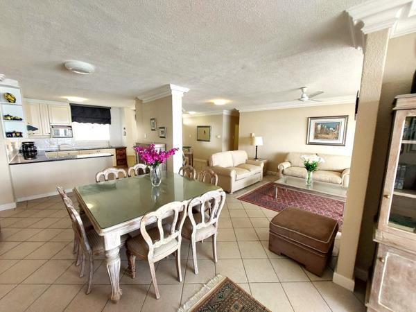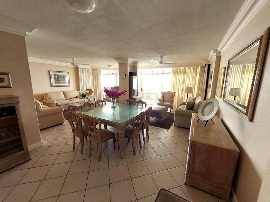This majestic apartment impresses from the minute you enter. Full advantage of those magnificent sea views is the key design element and on full display from every angle. Imagine a grand, elegant space where two lounges and a dining room seamlessly flow into a modern fully equipped kitchen and a beautiful enclosed all weather spacious patio, creating a harmonious, open-plan living area perfect for entertaining and everyday relaxation. The outside patio features a second dining option and another lounge with a built-in braai and windows that open to the fresh ocean breeze. The unsurpassed one-hundred- and eighty-degree Seaview is simply spectacular. The sleeping quarters consist of five bedrooms, three of which have breaker sea views, two are en-suite and a total of four bathrooms. The master suite features a small lounge, dressing table with mirror and a door to the enclosed balcony. The second bedroom also offers access to the balcony. The apartment is accessible by stairs or lift. An additional bonus is a private storeroom across the passage from the apartment. An automated double garage is allocated to the unit. Prime security with full walling and electric fence, gated access, security guard and estate manager.