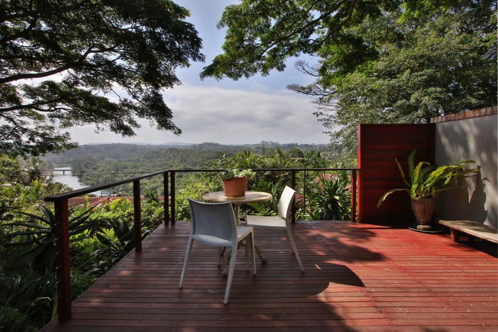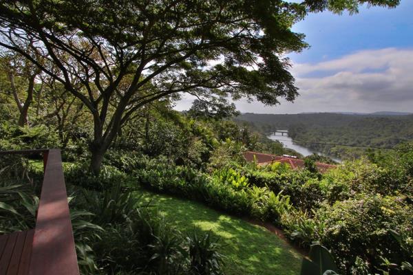 Discover this captivating residential property, offering a harmonious blend of modern living and natural beauty. The home presents striking kerb appeal with its contemporary architectural design, prominent tiled roof, and meticulously maintained tropical landscaping. Mature trees and lush greenery create a private, serene environment. Inside, an inviting open-concept living space is bathed in natural light, with large sliding glass doors ensuring seamless indoor-outdoor flow. Stylish terrazzo flooring,, superior finishes throughout , an exposed brick accent wall, modern kitchen with contemporary cabinetry define the interior, complemented by a pitched ceiling that enhances the sense of space. The views of the Imbezane River and bridge are spectacular.