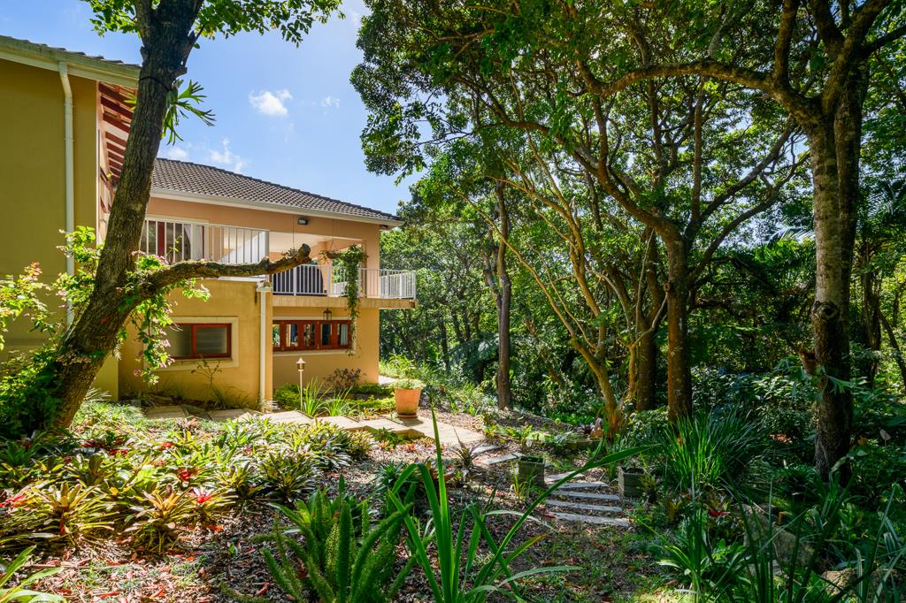 Wood Owl, a smart investment, in the heart of Southbroom surrounded by nature. This beautifully designed modern home offers effortless living on a single level, making it ideal for families, retirees, or anyone seeking convenience without compromise. Enter the main house under the grand port-cache step into the spacious open plan living area, sweeping from the bar area, to the lounge, to dining area & lovely large kitchen. Spanning the front of the home, with the feeling of being suspended in the lush greenery of the gardens, is a balcony with a large undercover area fantastic for entertaining or just enjoying your morning coffee. Three spacious bedrooms each with their own en-suite bathrooms, a double garage with direct entry into the house & a scullery complete the features of the main house.