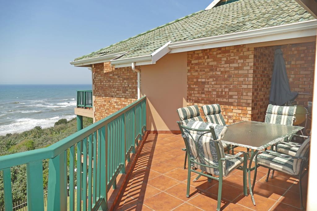 This immaculate penthouse is located in an exclusive and well managed beachfront complex. There is a pedestrian gate in the complex which permits direct access on to blue flag Trafalgar beach and Marine reserve. Marina Beach and Mariners Beach restaurant is only a barefoot stroll away. The reception rooms of this unit comprise open plan lounge, dining room and kitchen opening onto the spacious, covered balcony with breath-taking views of the breakers, rocks and beach. The well designed, fitted kitchen has a breakfast bar and ample working surfaces and fitted cupboards.
