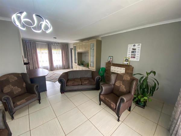 Natural light fills the living spaces, enhancing the open feel of the home. The tiled floors add a touch of elegance while remaining easy to maintain. Security is paramount, with burglar bars installed throughout the property, ensuring peace of mind for all residents.
