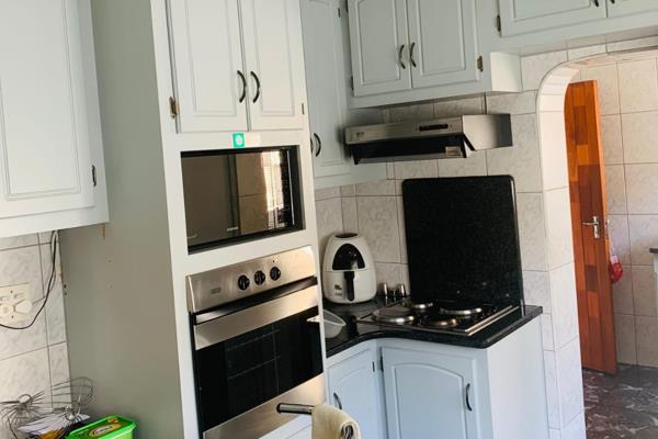 The kitchen offers ample storage and workspace for easy meal preparation.