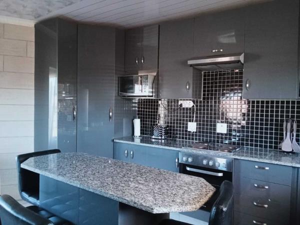 At the heart of this home is a modern kitchen, complete with stylish cabinetry in modern colours, a funky tiled splashback, sleek countertops, and a centre island.