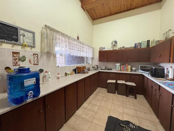 Large, well-appointed kitchen with built-in cupboards, separate scullery, and laundry area