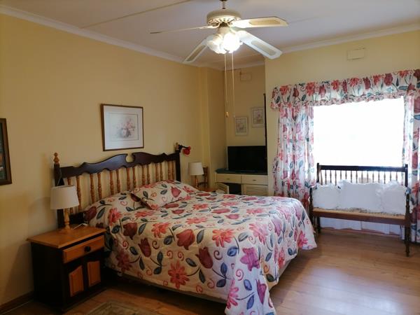 The well-appointed kitchen is accompanied by a reasonably sized scullery for added convenience. Outside, the property offers beautiful lifestyle features, including a sparkling swimming pool, a charming lapa for entertaining, and a lush, well-maintained garden that enhances the home''s tranquility.