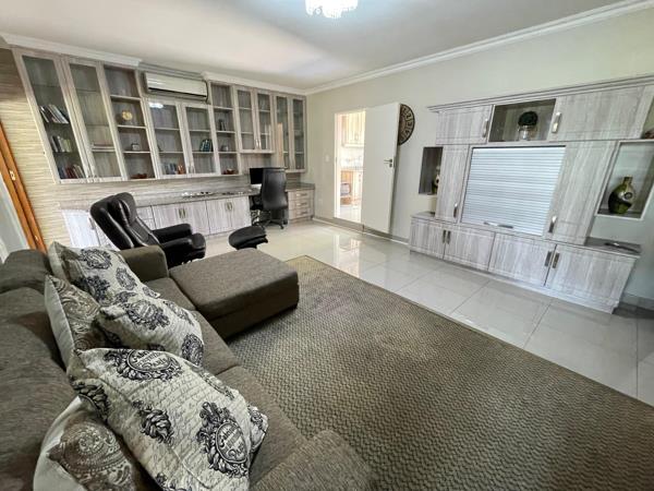 The main lounge, as well as the family lounge, offers a fireplace and air conditioning. All the rooms enter onto a small outside patio that overlooks the pool and is equipped with air conditioning units. The main bedroom is very spacious with a dressing area and MES, adding a touch of character and nature with the rock-art finish and small indoor garden. The double garage is neatly tiled out with electric doors and an air conditioner. An extra outside kitchen/Laundry area is neatly tiled out and fitted with BIC. The large yard space offers a log cabin that can be used as a store room, guest suite, entertainment area, study/office, home gym, etc. There is also a double carport in the backyard with an entrance gate for extra parking. Spacious and elegant, this new property on the market will exceed your expectations.
