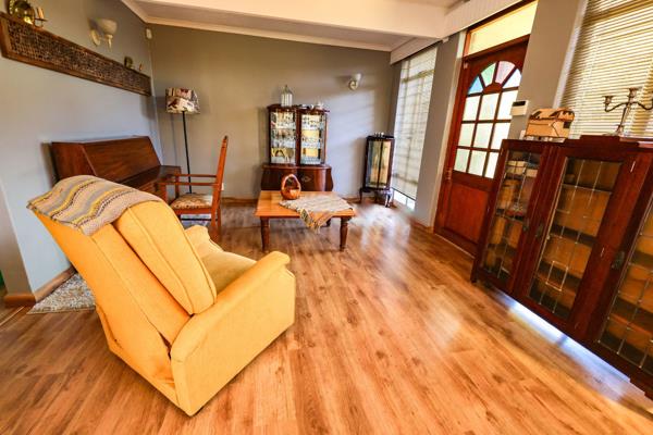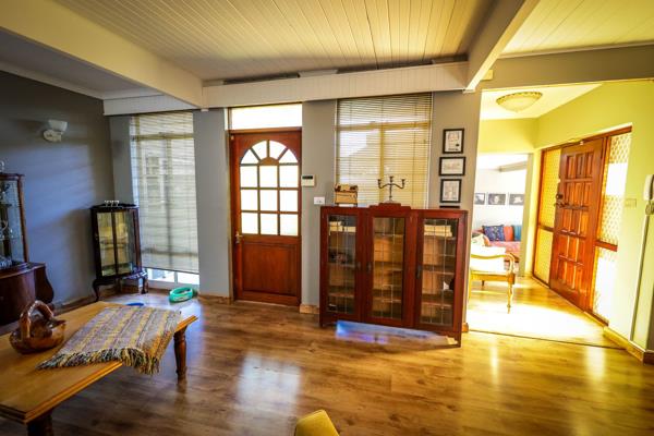 space, with 2 sliding doors, has a built in braai, preparation counters, fitted cupboards and overlooks the back garden with large pool. The third living space is a welcoming living area/tv room, the sliding door allows sunlight to stream into this space.